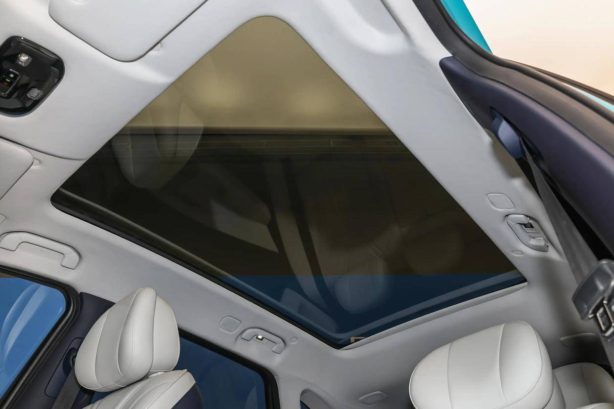 该车还配备了一块大面积的全景天幕,并带有遮阳板,天幕虽然无法开启通风,但可以采光,如果阳光照射强烈的话,还可以打开遮阳板,以阻挡阳光。