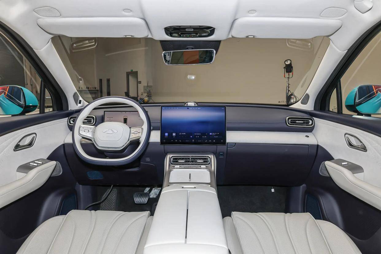 内饰方面,该车的设计风格十分简洁,配备了液晶仪表盘和17.3英寸的2.5K中控屏幕,车机系统支持高德地图、CarPlay、Carlink、HUAWEI HiCar、 四区域语音识别控制、车载KTV、手机APP远程功能、车联网和OTA升级等。