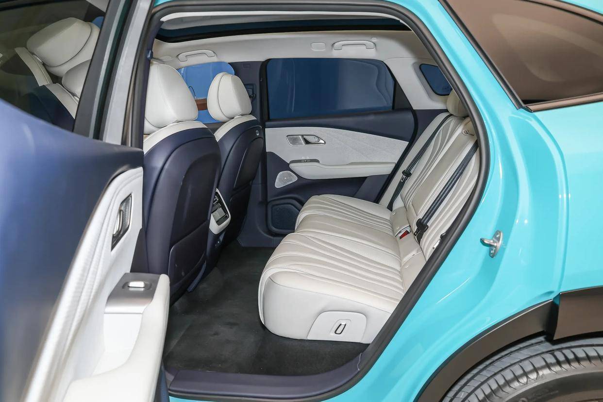 该车的后排空间十分宽敞,后排地板也很平整,而且座椅靠背支持35度电动调节,想要坐直一些或者“半躺”都可以,乘坐舒适性还是很不错的。